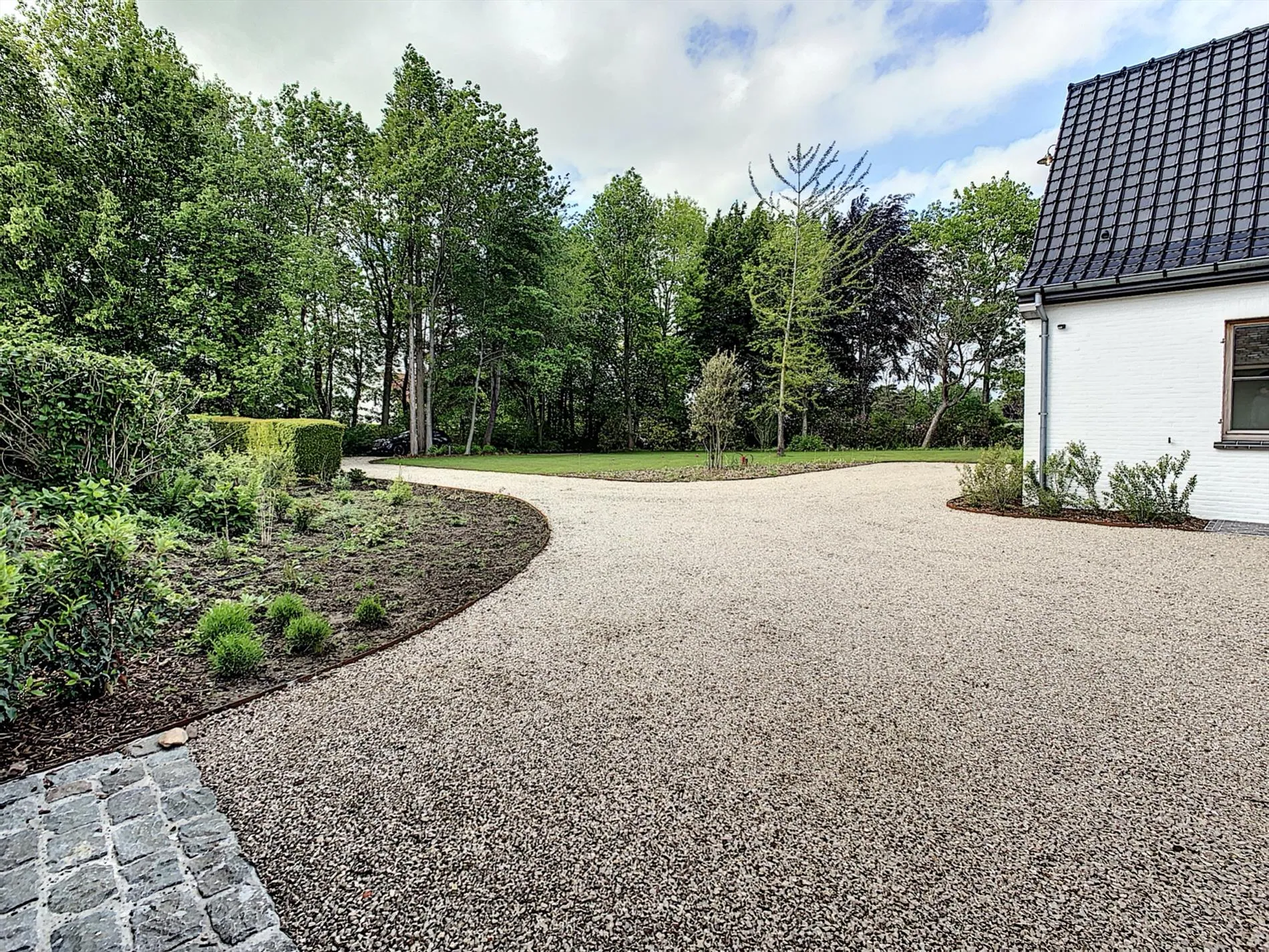 Prachtig aangelegd oprit met tuin, en toegang tot zowel het woonhuis als de garage. De garage heeft plaats voor 2 auto's.