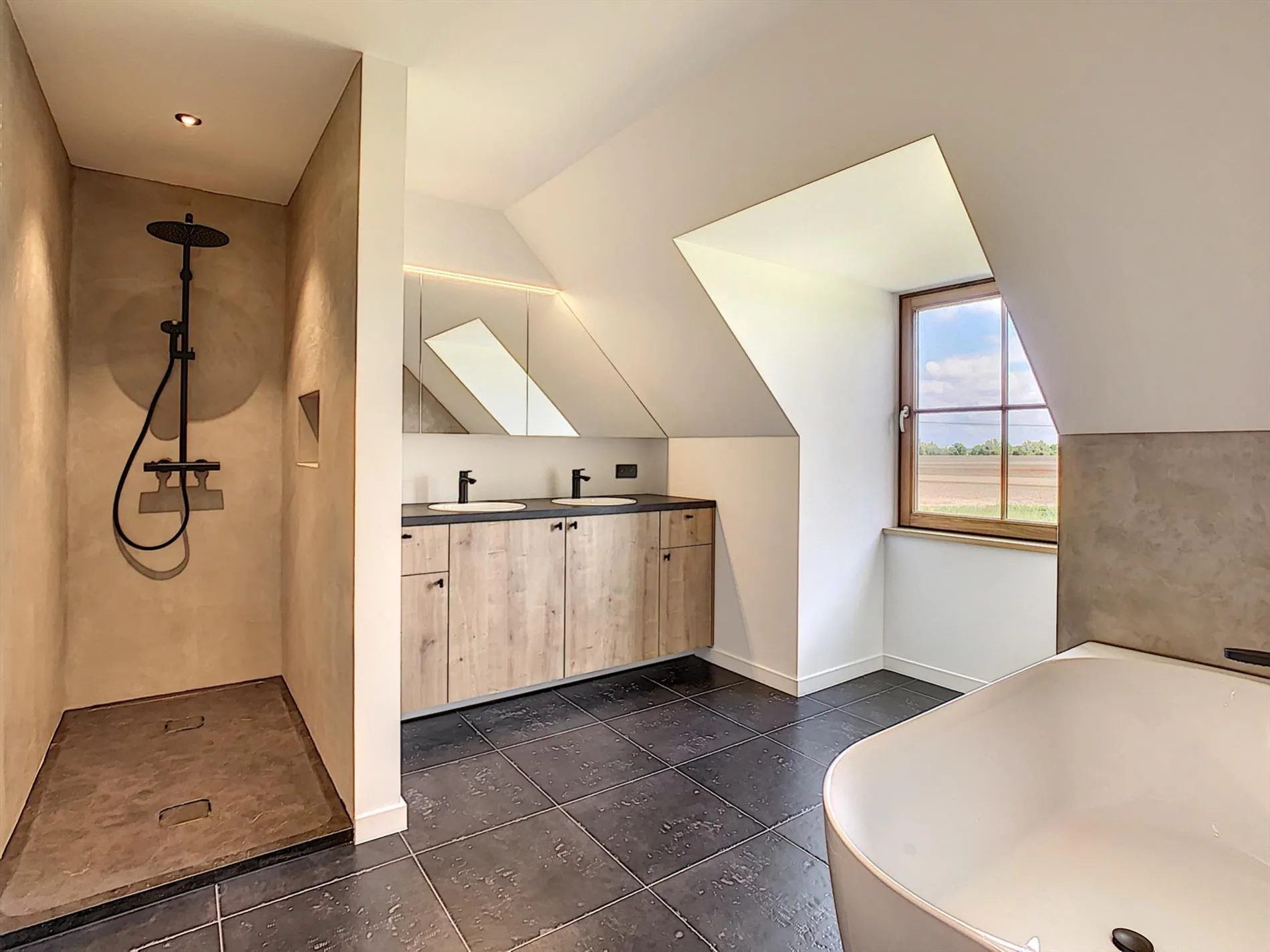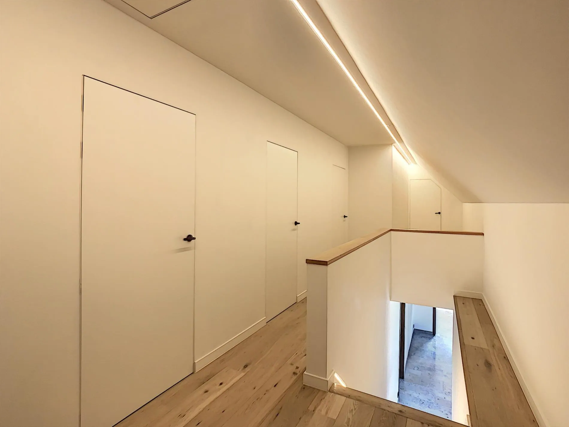 Via de inkomhal heb je bovendien toegang tot de hall op de bovenverdieping. Hier vinden we nog eens 2 ruime slaapkamers, een volledig vernieuwde badkamer, apart toilet en wasplaats. Tot slot vinden we op de bovenverdieping ook nog de master bedroom en master badroom, met plaats voor een dressing.