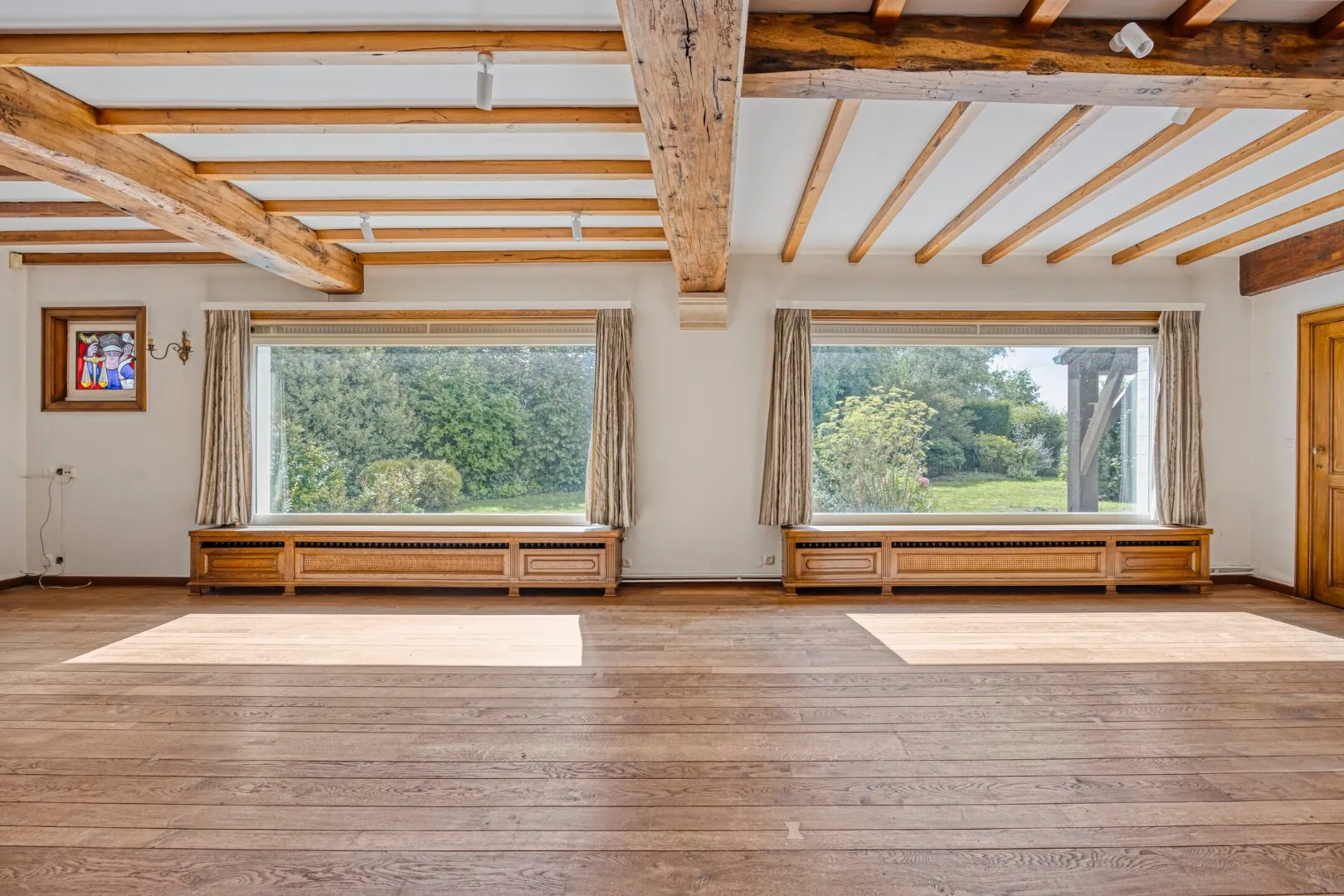 De villa heeft een oprit langs beide zijden, ruime parkeermogelijkheden én een dubbele inpandige garage: ideaal voor wie wonen-werken wil combineren, nood heeft aan veel (hobby-)ruimte of kortom voor wie graag landelijk wil wonen.