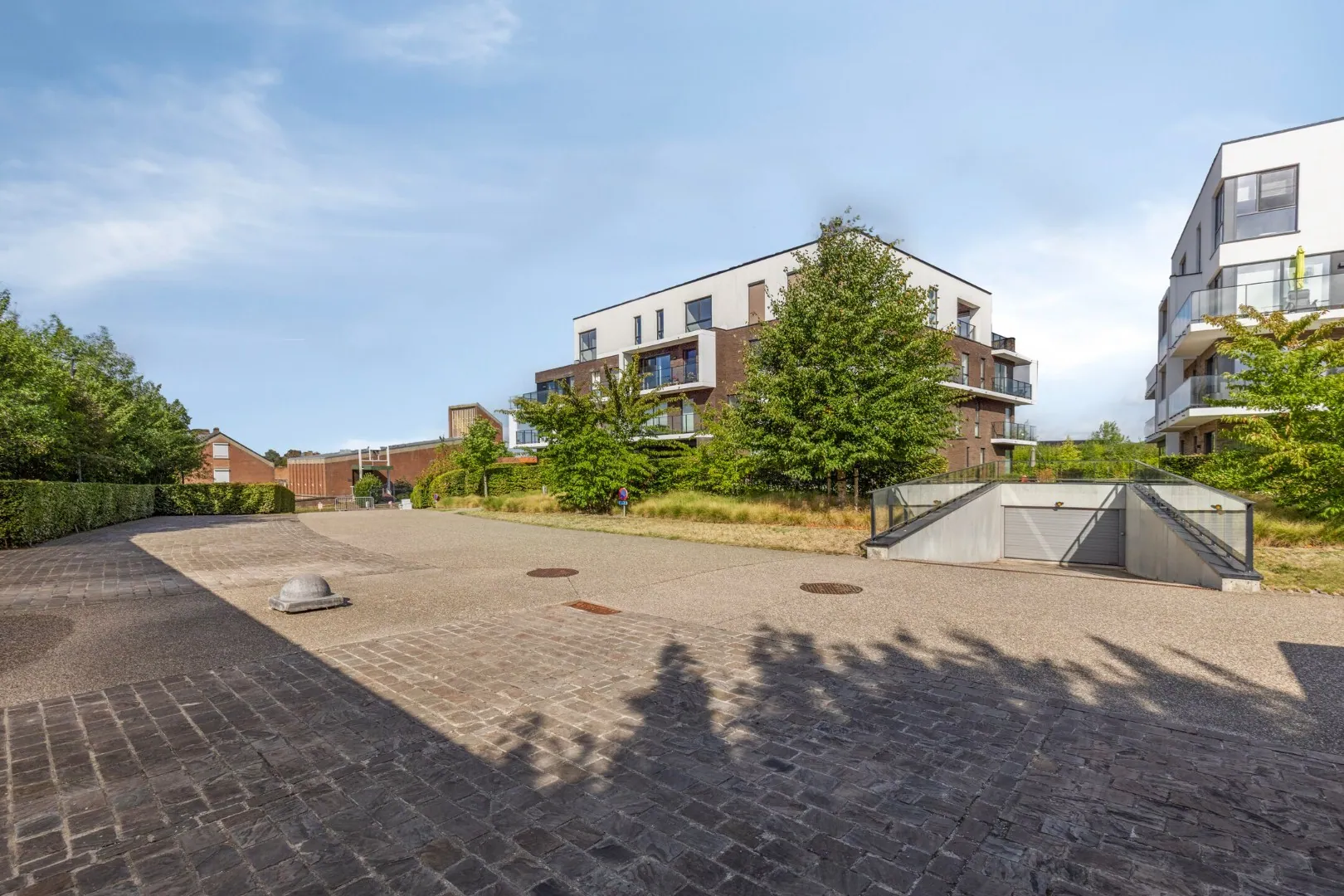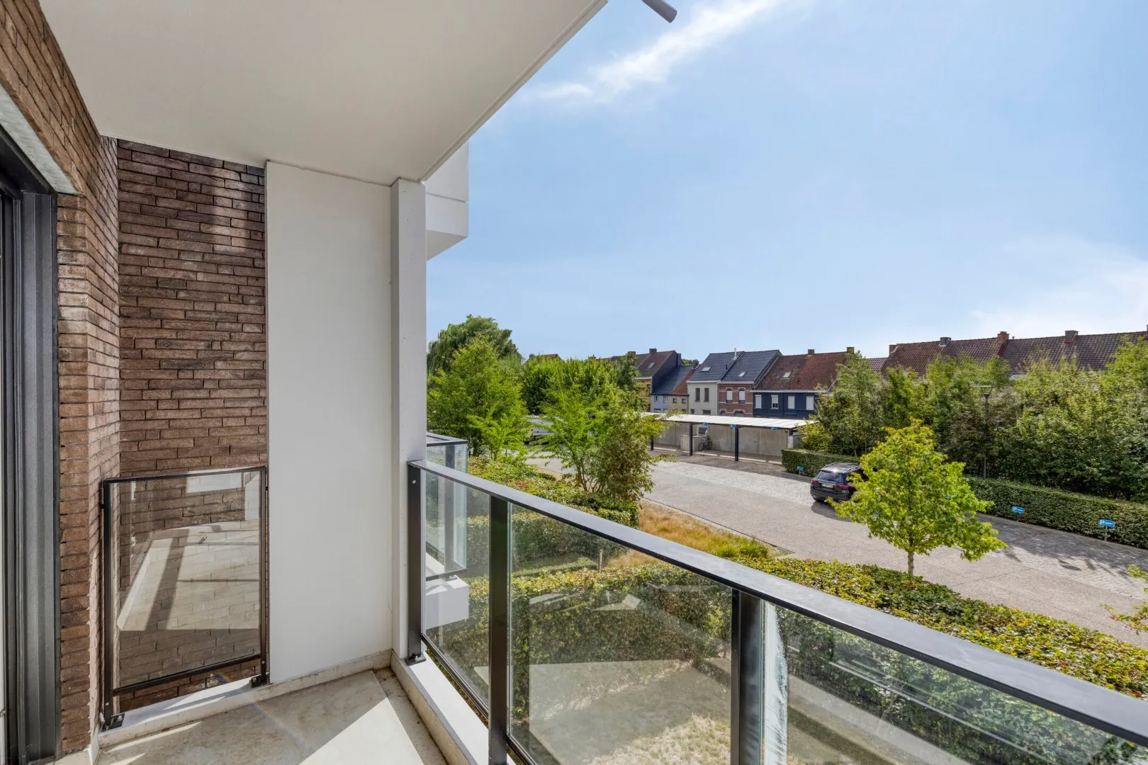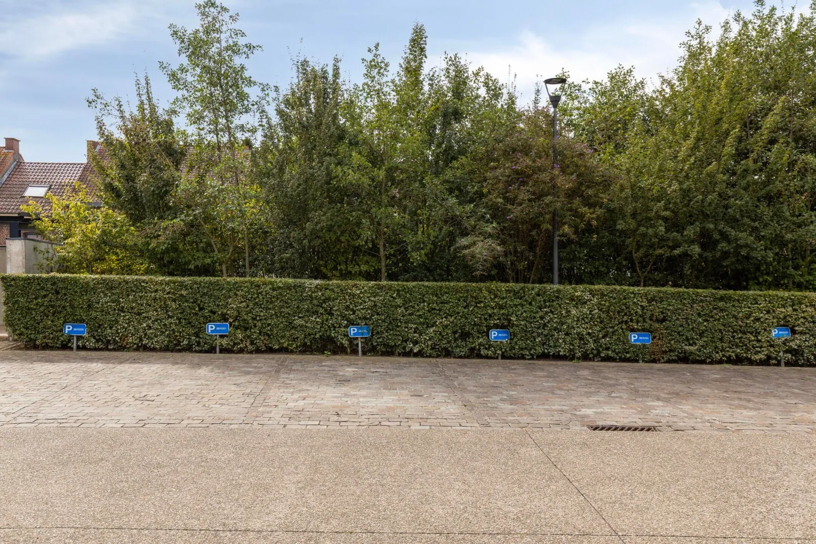 Buiten is er een bovengrondse autostaanplaats, deze is verplicht aan te kopen voor 10.000 euro.