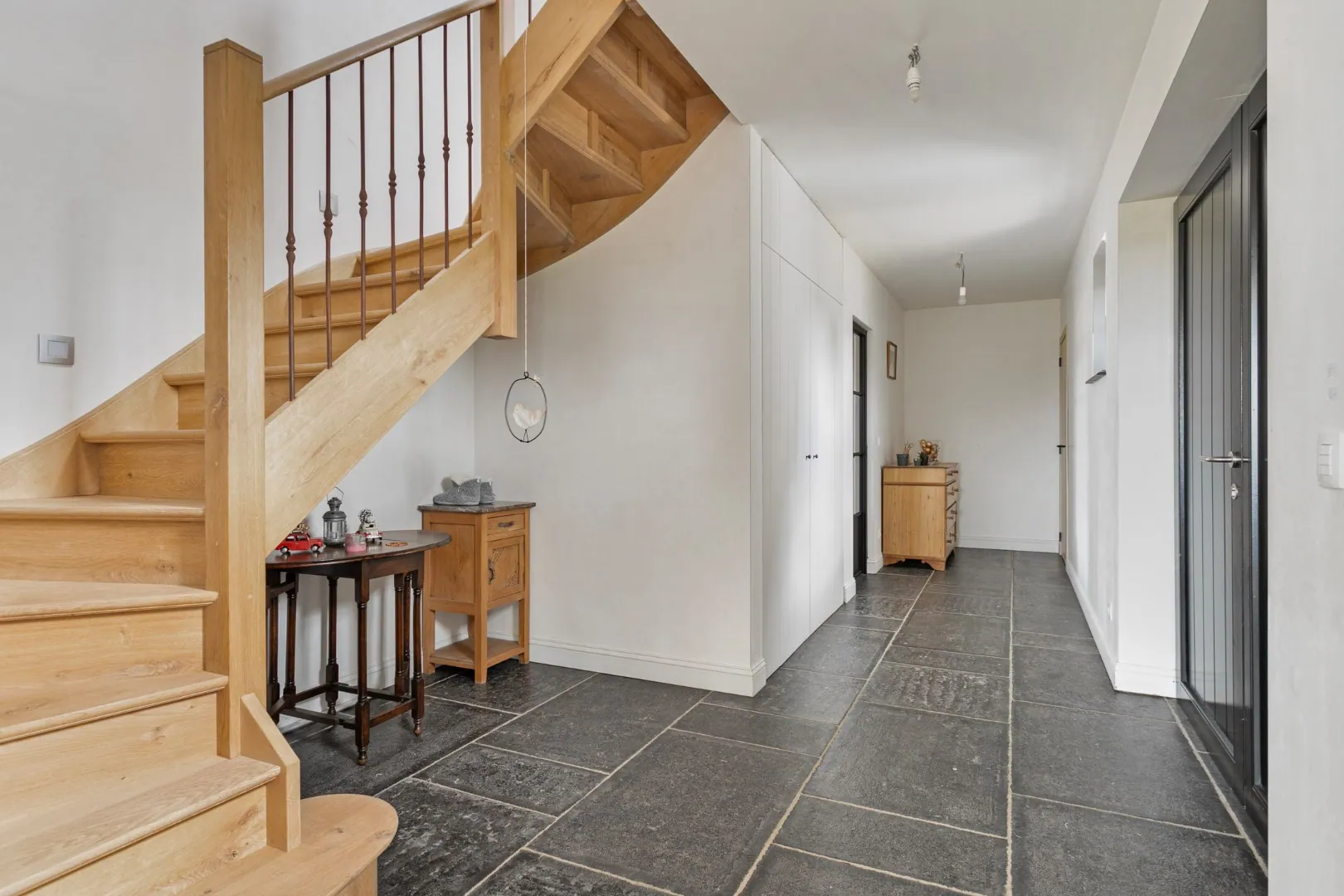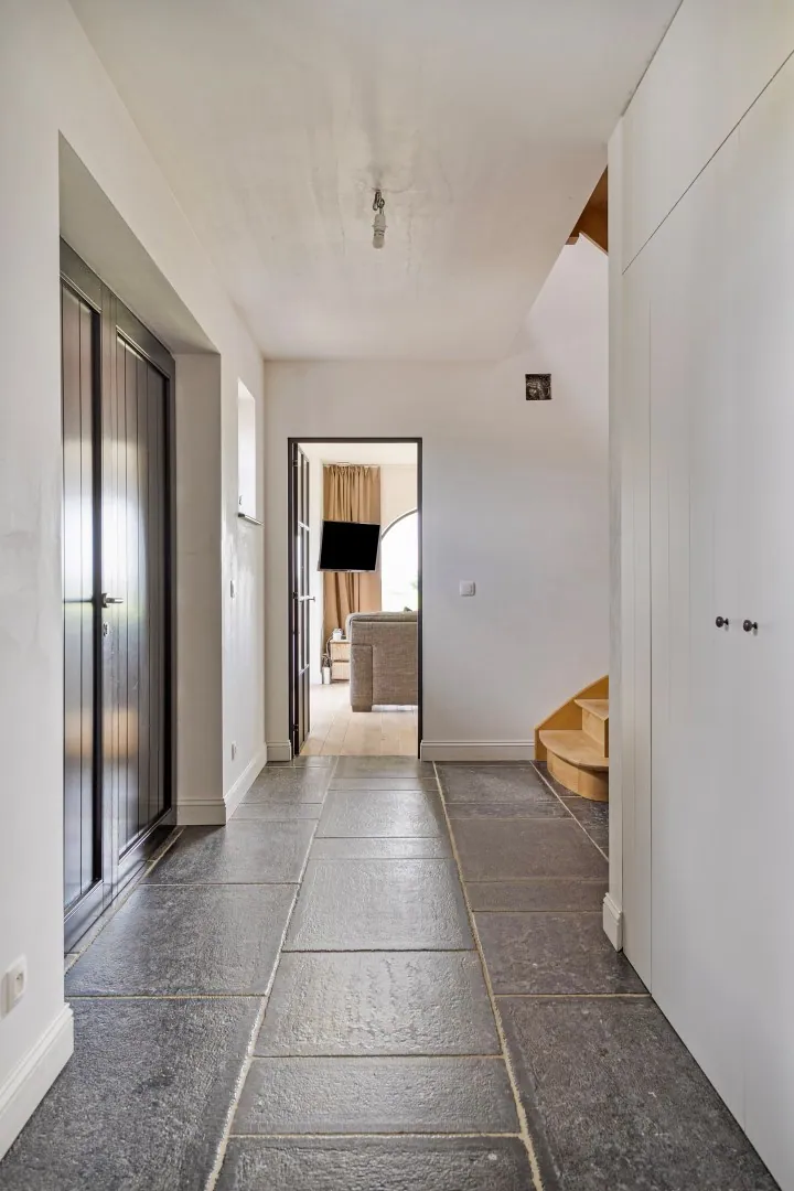 De afwerking in het interieur vertaald zich met prachtige blauwstenen vloeren, parket, houten ramen (afzelia),...