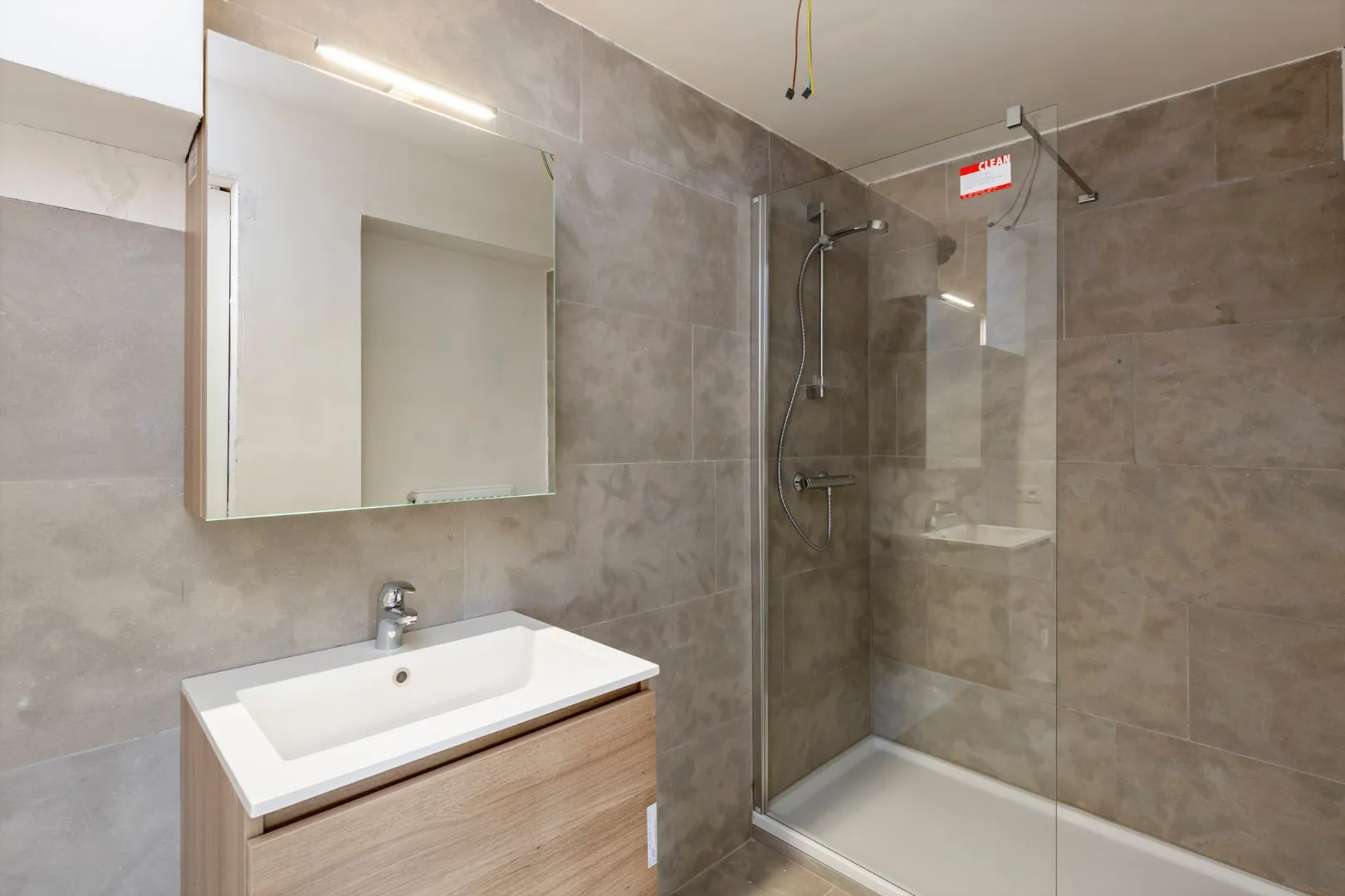 De appartementen werden verder gevloerd met zowel parketvloeren als natuurstenen vloeren.