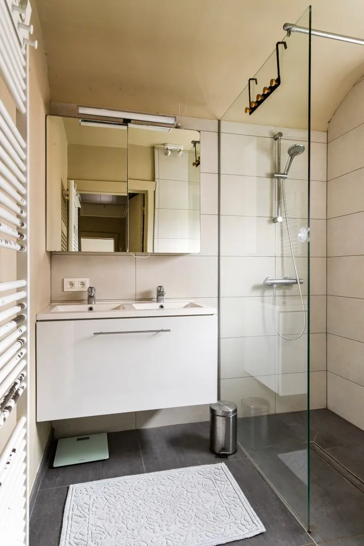 Op de eerste verdieping vinden we 3 ruime slaapkamers en een badkamer met dubbele lavabo en inloopdouche.