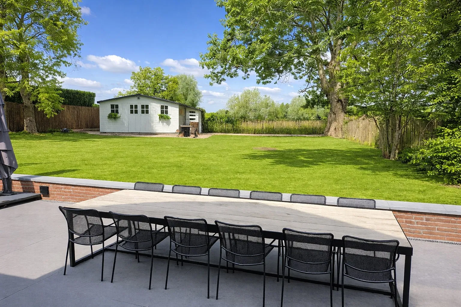 De woning biedt aan de straatzijde plaats voor 4 wagens en is uitgerust met een laadpaal. Achteraan de woning hebben we een groot, zonnig en prachtig aangelegd terras aansluitend aan de mooie ruime tuin voorzien van een tuinhuis met extra zonneterras én petanque baan waar je in alle rust kan genieten van het groen en het open zicht. De open bebouwing zorgt bovendien voor extra privacy en een gevoel van vrijheid. De tuin geniet een uitzonderlijk verzicht over de velden.