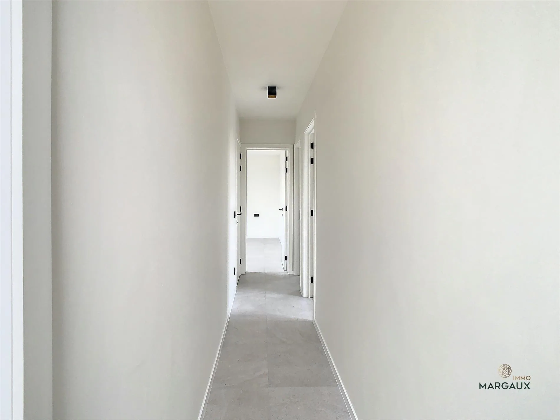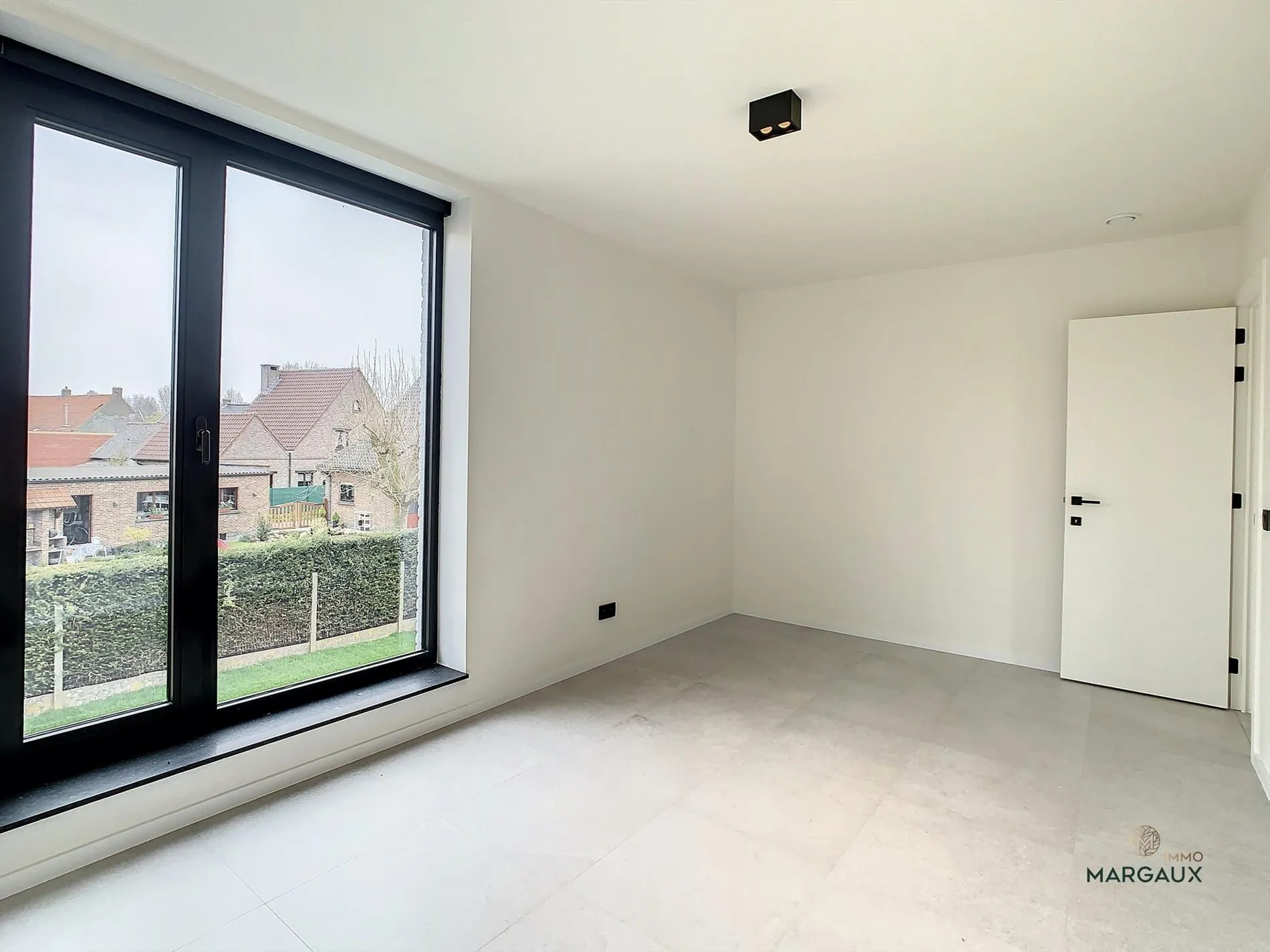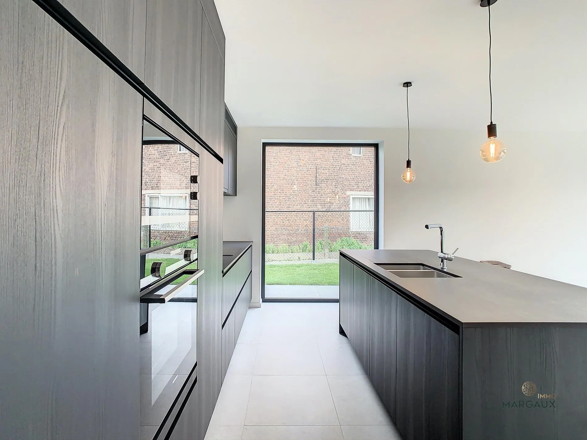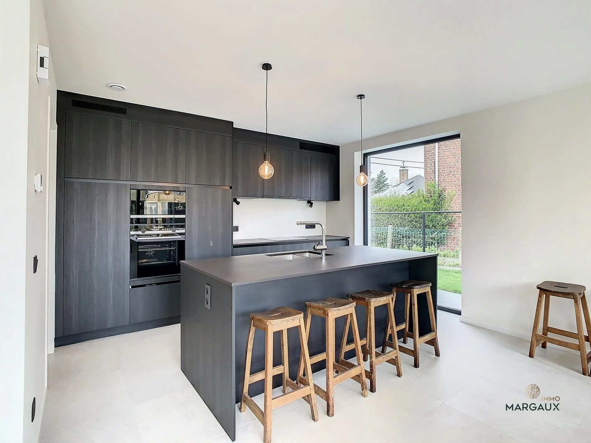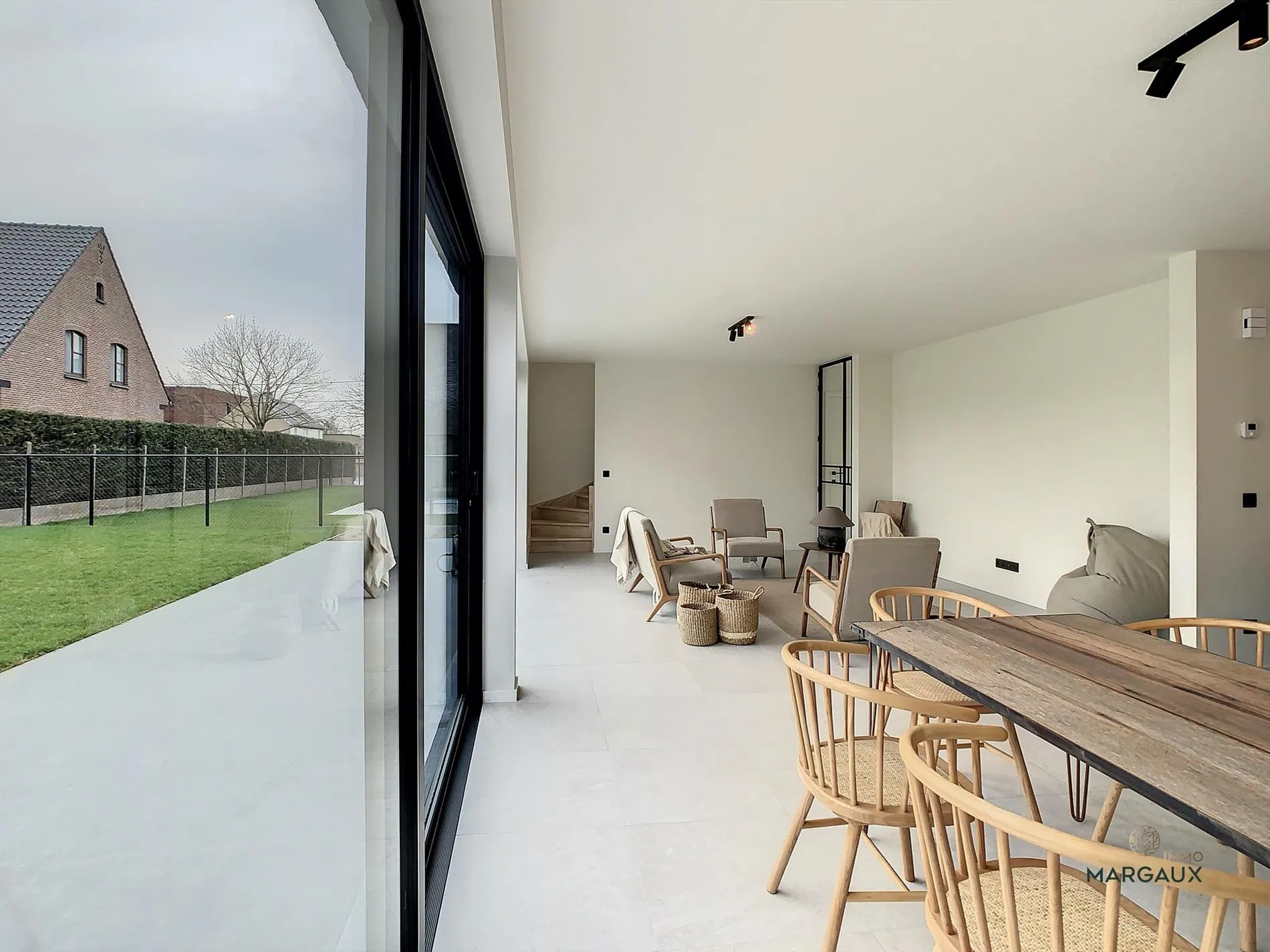 Extra troeven zijn de zonnepanelen, de laadpaal voor elektrische wagen, regenwaterput, zwarte aluminium ramen en afwerking in accenten, vloerverwarming,..