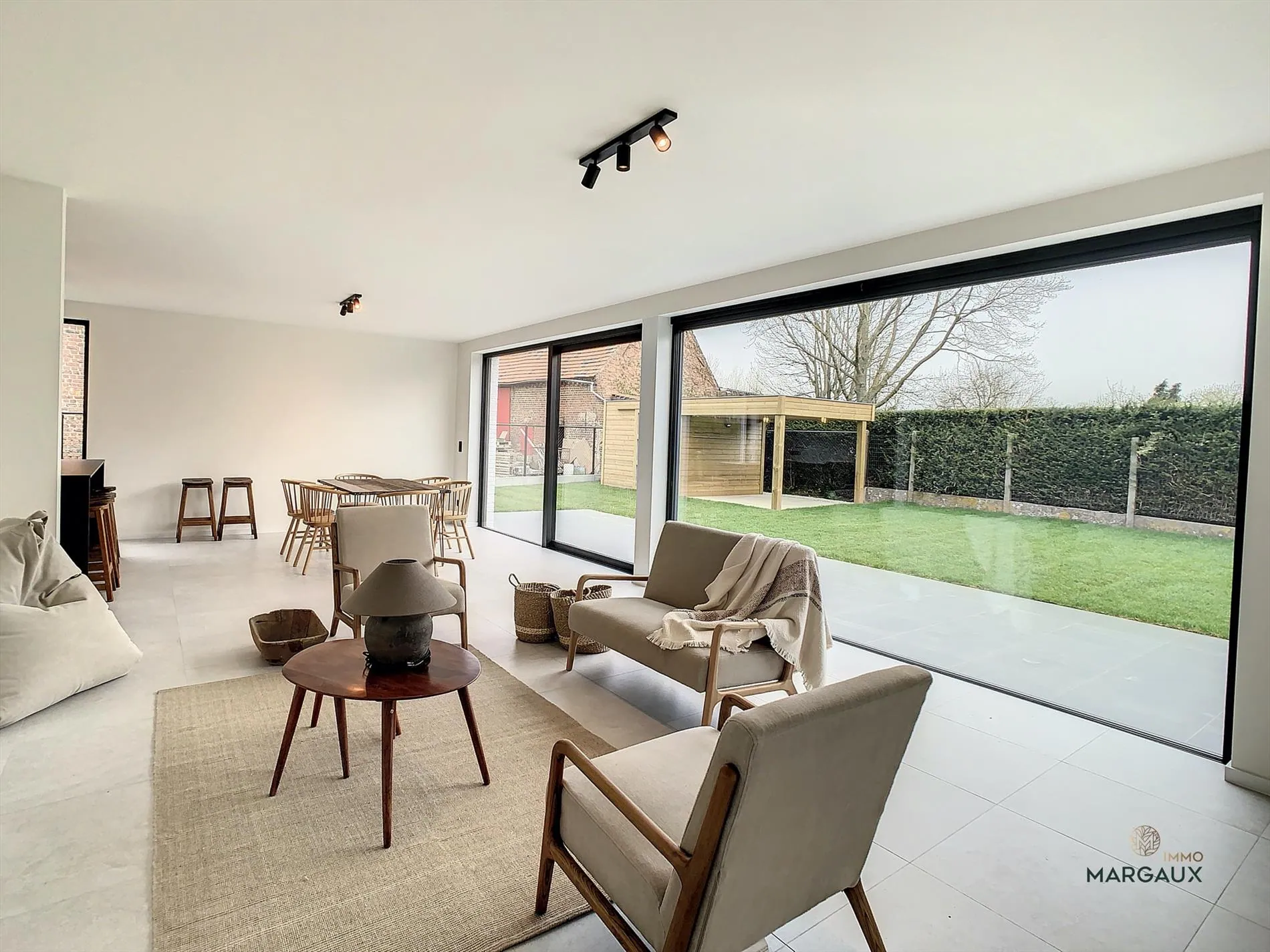 Vanuit de open keuken, en de eet- en leefruimte geniet je van het zicht op het prachtige terras met tuin.