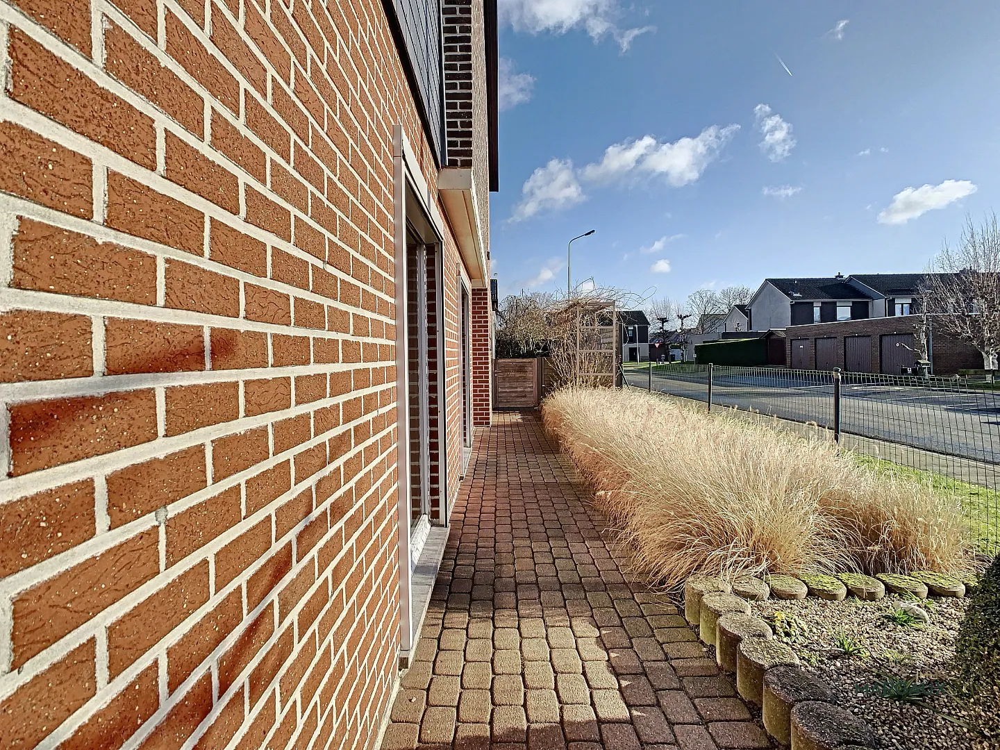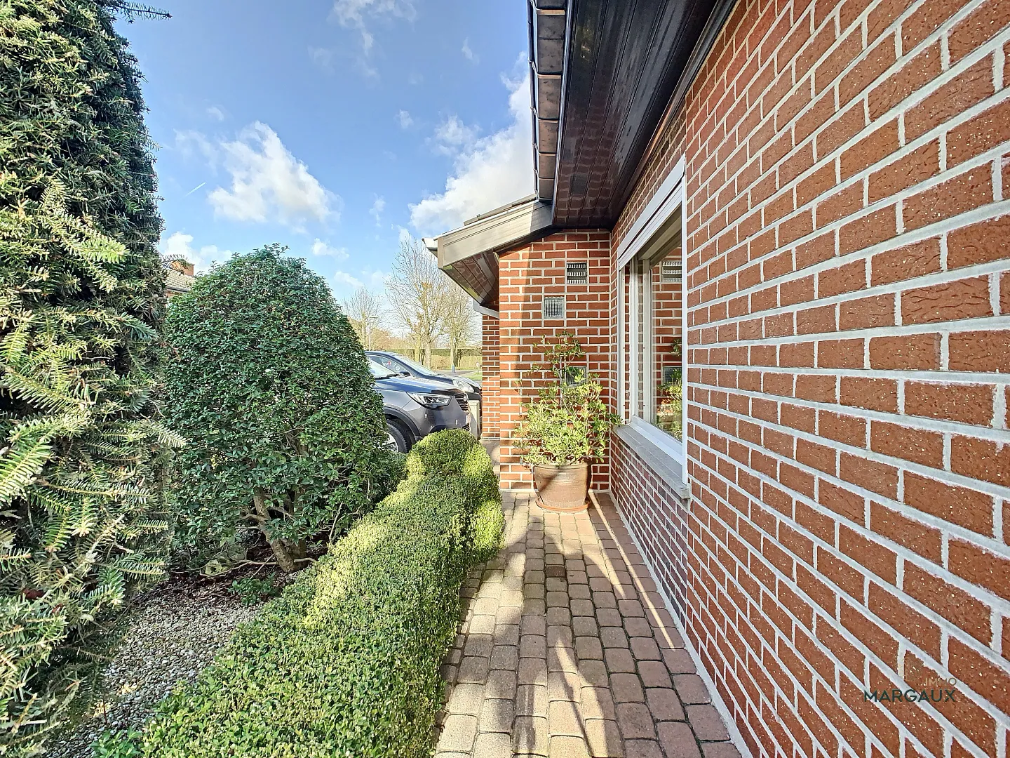 Mooi aangelegd pad naar de ruime inkomhal met vestiaire, gastentoilet en trap naar de eerste verdieping.
