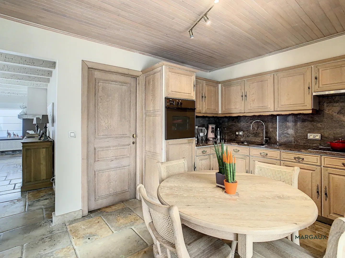 Aansluitend vinden we de uitgeruste keuken met koelkast, oven, kookplaat, dampkap en spoelbak. De keuken heeft ook een handige keukenberging met vaatwas.