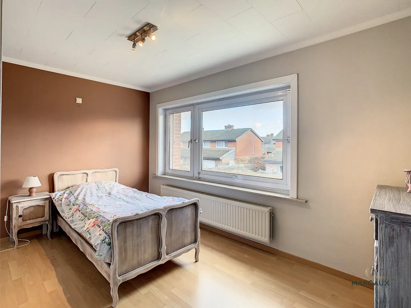 Op de bovenverdieping is een centrale gang die toegang geeft tot de 3 volwaardige slaapkamers, een linnenkast en de badkamer. Via de gang kan je met een uitneembare zoldertrap naar de bergzolder.