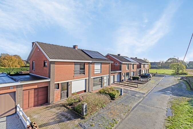 Deze open bebouwing is vlot bereikbaar maar toch rustig gelegen in een doodlopende straat. De villa staat op een mooi perceel van 700 vierkante meter: een zonnige tuin is hier zeker een troef. De indeling van de woning gaat als volgt: Oprit met plaats voor meerdere voertuigen, en aangelegd gangpad naar de inkomhal. Bloemenperkjes die in de zomer mooi bloeien. Je komt binnen in de inkomhal met gastentoilet en lavabo. De gang heeft toegang tot de verschillende ruimtes, allemaal met elkaar verbonden. Enerzijds de inpandige garage (m…